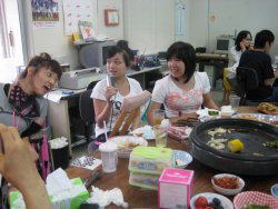 | 今年も暑さが非常にきびしい最中、多くの人が夏休みに入る直前の8月12日(木)に、納涼バーベキューは行われました。 前日中に机などの移動をすませ、各班5〜6人で5班にレイアウトを変更し、座席表にしたがい分かれることにしました。朝のミーティングの後で当番表にしたがって、各自はテーブルのセッティング、食材の準備として野菜のカッティング、食べ物や飲み物の配布などをすませ、納涼バーベキューの準備が整いました。 予定より少し早く12時前には準備ができたので、実行委員のNさんの開会の挨拶による乾杯でスタートしました。各テーブルには、焼肉、フランクフルト、枝豆やとうもろこしや焼肉用の野菜、キムチ、スイカやぶどうなどが並びました。さっそくホットプレートで焼肉や野菜を焼き始めましたが、ボリュームもたっぷりで食べきれるかなと心配になるほどでした。でも、お肉はとてもやわらかくておいしいし、お酒を飲み始めたことも手伝って食もすすんだせいか、私達のテーブルでは1時の時間前には食べ終わってしまうほどでした。 さておなかもいっぱいになったところで、最初のイベントであるビンゴ大会のため、まずは全員にビンゴカードが配られました。実行委員であるNさんとSは読み上げる役と貼り出した紙に数字を書き込む役を交代して務めました。自然とビンゴ大会では興奮し、思わず大きな声が出てしまのは不思議ですね。賞品には仲間の作業所の製品がもらえるというのに、私は前半では全然ビンゴができそうもありませんでした。ところが、途中から数字もよく出るようになって、何とか「むつみ会」の木工細工をもらえましたが、中には残念ながら賞品をもらえない人もいました。 続くイベントのカラオケ大会では、5人が出場して得意の歌を披露し、5つのグループの採点を集計し、最後に結果を順に発表して行きました。Yさんの一番の楽しみであるカラオケ大会では、おもいっきりがんばって歌い、そこそこの成績で上手に歌うことができて嬉しかったそうです。最後の1位は見事に新人Mさんが受賞して、本人もカラオケ大会で優勝できたのはうれしかったそうです。 番外編のイベントとしてスイカ割りが登場し、各グループから1人の計5人を選び、1班は私が指名され順番も1番に決まりました。目隠しをされると何も見えなくて声だけが頼りなのですが、皆の声が入れ替わり立ち代りに聞こえるために混乱してしまいました。仕方がないので、覚悟を決めて振り下ろしたところは見事にはずれでした。他の4人もやはり難しいと見えてみんな空振りでしたが、でもスイカはみんなでおいしく食べることが出来ました。 気がつくともう3時で、楽しい一時を過ごした時間はあっという間に終わりになり、最後にみんなで後片づけをして解散になりました。これで新人も割り振られた役目を果たしてバーベキューに参加したことで、アスタPCのメンバーの一員になれたものと信じています。また、みんなで次回のバーベキューを楽しみしたいと思います。 最後に、打合せや事前準備、買出しやイベント進行、後片づけなどにご協力を頂いたスタッフさんやボランティアさんに感謝したいと思います、本当にありがとうございました。また、実行委員のNさんは大変お疲れさまでした、Nさんの努力や苦労に比べれば同じ実行委員としてまだまだ努力が足りないと反省しきりのSでした。 | ||||||||